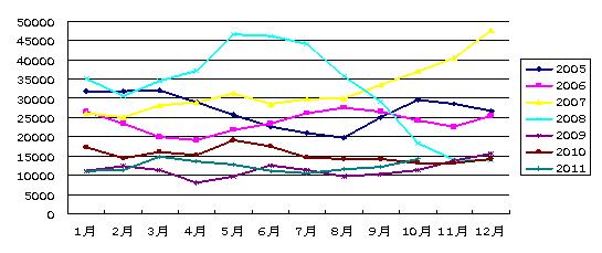 圖2. 2005-2011年克拉克松海運綜合指數(shù)走勢比較