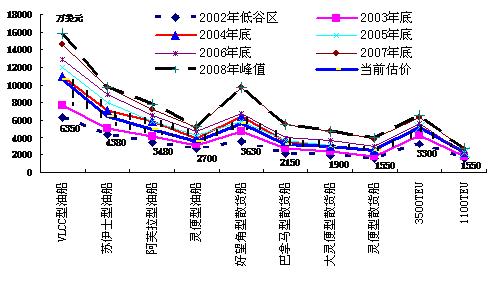 圖2. 2002年以來典型船型走勢比較