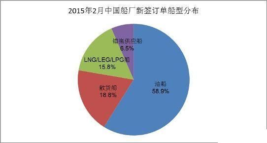 按船廠分析,2015年2月,接單量排名前三位的船廠依次為大連船舶重工、新楊子造船和外高橋造船,接單量分別為17.6萬、6.1萬和5.2萬CGT。