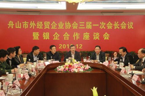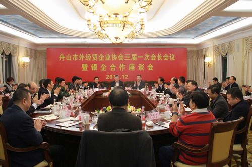 2016年12月20日下午,舟山市外經(jīng)貿(mào)企業(yè)協(xié)會(huì)在朱家尖和潤集團(tuán)總部召開三屆一次會(huì)長會(huì)議暨銀企合作座談會(huì),市政府副市長黃國華出席會(huì)議并作重要講話,出席會(huì)議還有:市商務(wù)局局長干松章、副局長盛惠敏、舟山市出入境檢驗(yàn)檢疫局、舟山海關(guān)、舟山邊檢、舟山農(nóng)業(yè)銀行、中國銀行、交通銀行、浦發(fā)銀行、工商銀行、建設(shè)銀行領(lǐng)導(dǎo)和協(xié)會(huì)會(huì)長、副會(huì)長單位領(lǐng)導(dǎo)。